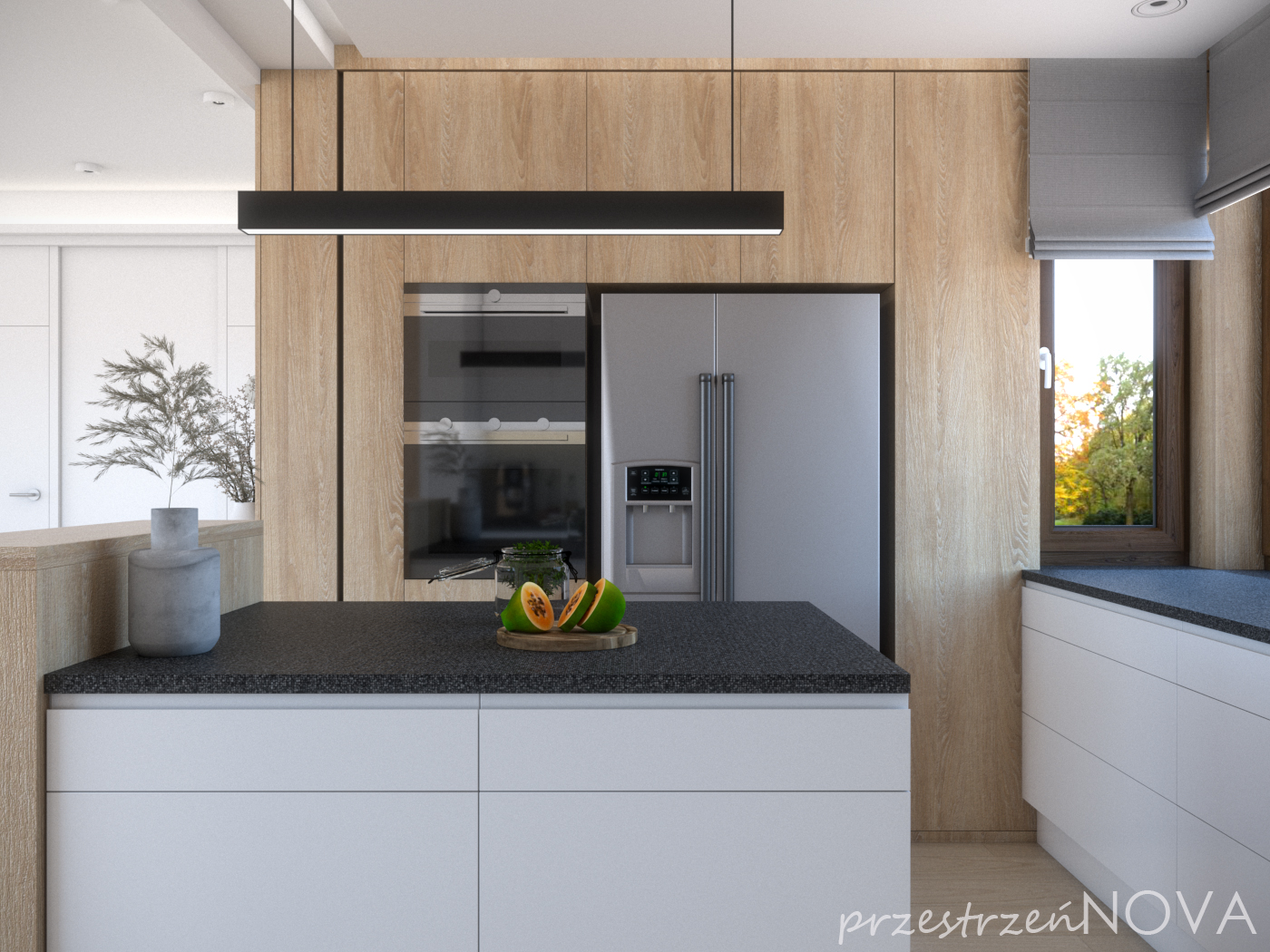 Otoczona światłem otwarta na jadalnię i salon z bezpośrednim dostępem do spiżarni